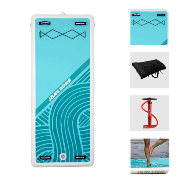Realizzato con tecnologia Drop-Stitch, la piattaforma gonfiabile Jfit misura ben 218 cm di lunghezza e 91 cm di larghezza, con uno spessore di 15 cm per riuscire a supportare in maniera ottimale fino a 105 Kg di peso. Le pratiche maniglie consentono un trasporto semplice e senza sforzo, anche grazie al peso contenuto di soli 11 Kg della piattaforma.