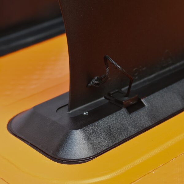Le 5 pinne di stabilizzazione, quattro fisse laterali tipo “quadrifin” e una centrale removibile, sono ideali per per controllare la tavola al meglio nella corrente, debole o moderata. La sua velocità di percorrenza è buona, anche grazie alla lunghezza di 9’6’’(290 cm) del deck.